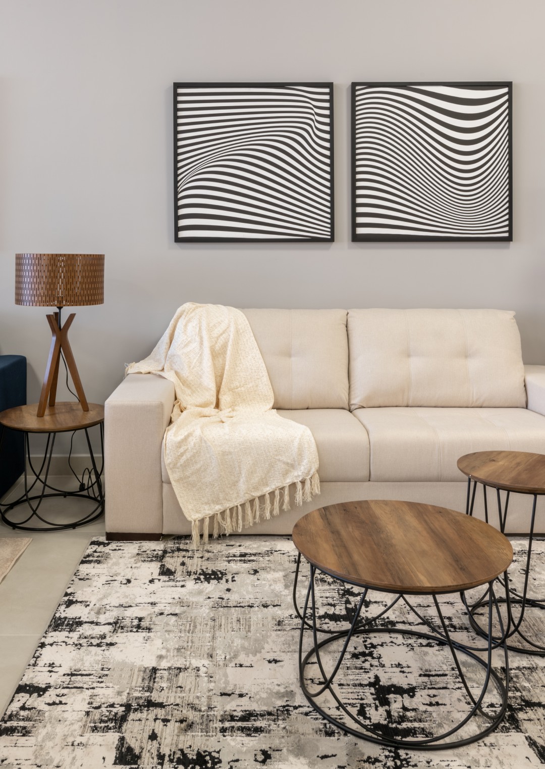 Transforme sua casa em uma galeria de design com o tapete Mahal. Seu padrão abstrato e o toque macio convidam ao relaxamento, criando uma atmosfera moderna e aconchegante!